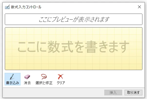 「Handwrite your formula here」という文字とともに画面が表示されるので,数式を記入します.