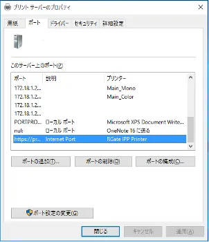 4. 「プリントサーバーのプロパティ」画面が開きますので,「ポート」タブを開いてください.