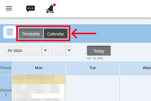 - Clicking the “Today” button will display the timetable for the current term.