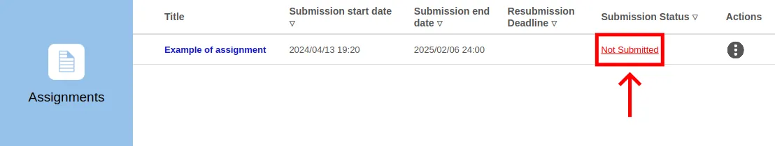 - Click the “Not Submitted” (or “No Submission Required”) button in the “Submission status” column.