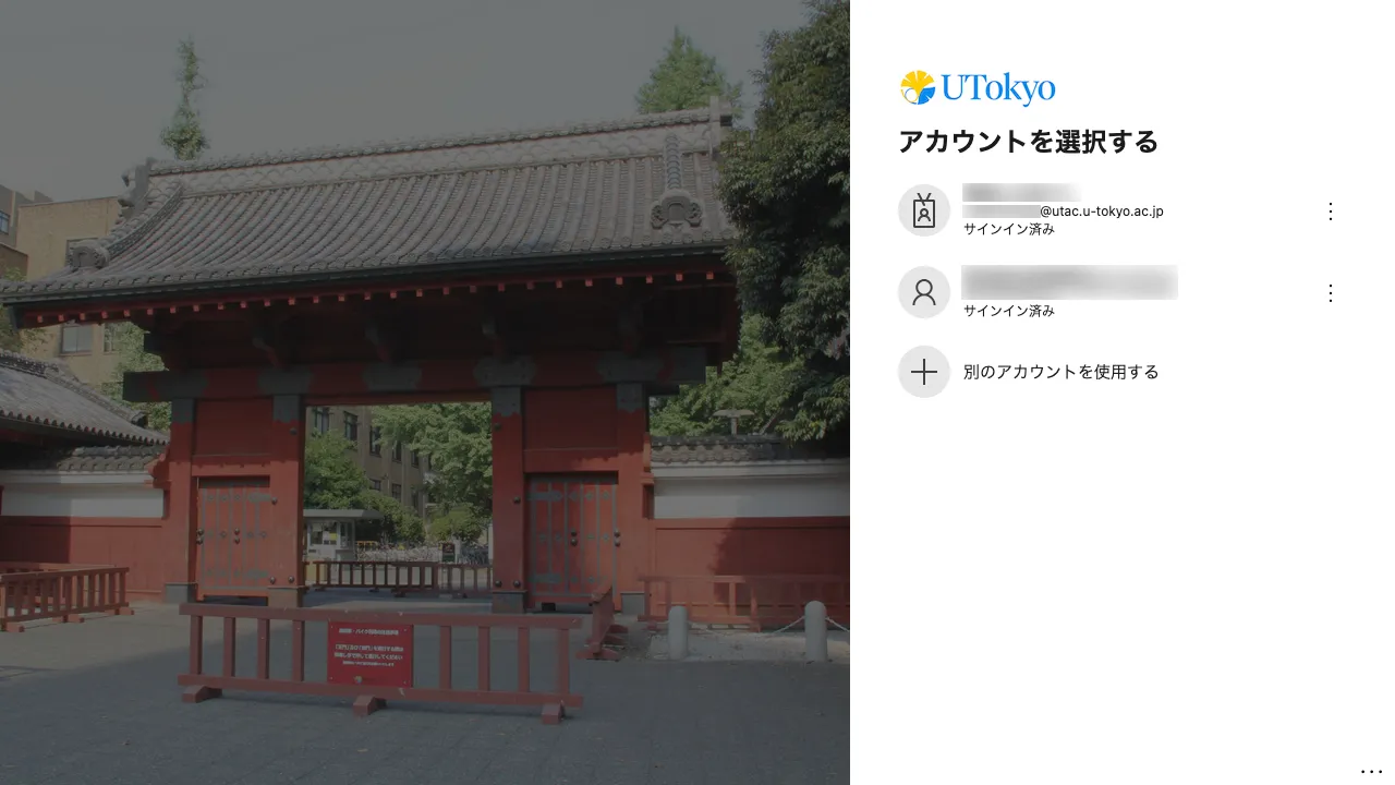また,サインインの際,次のような画面が表示されることもあります.この場合は同様に「10桁の共通ID+@utac.u-tokyo.ac.jp」と書かれた項目を選択してください.