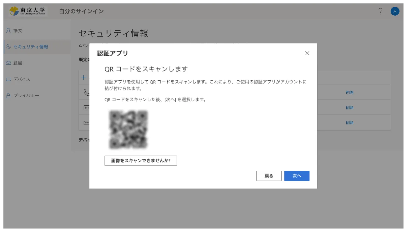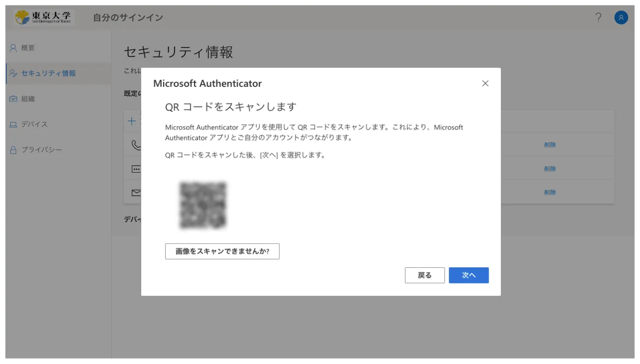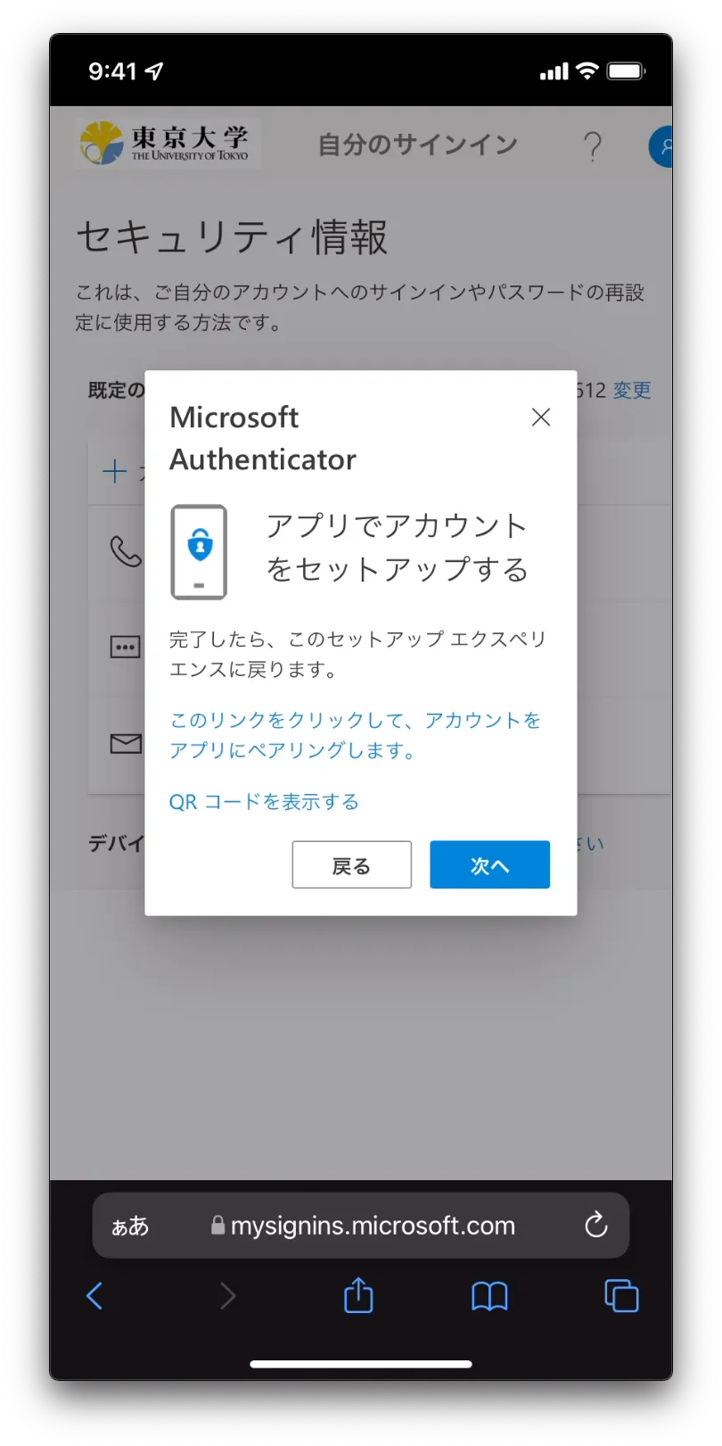 6. 「セキュリティ情報」と書かれた多要素認証の設定ページが表示されればOKです.