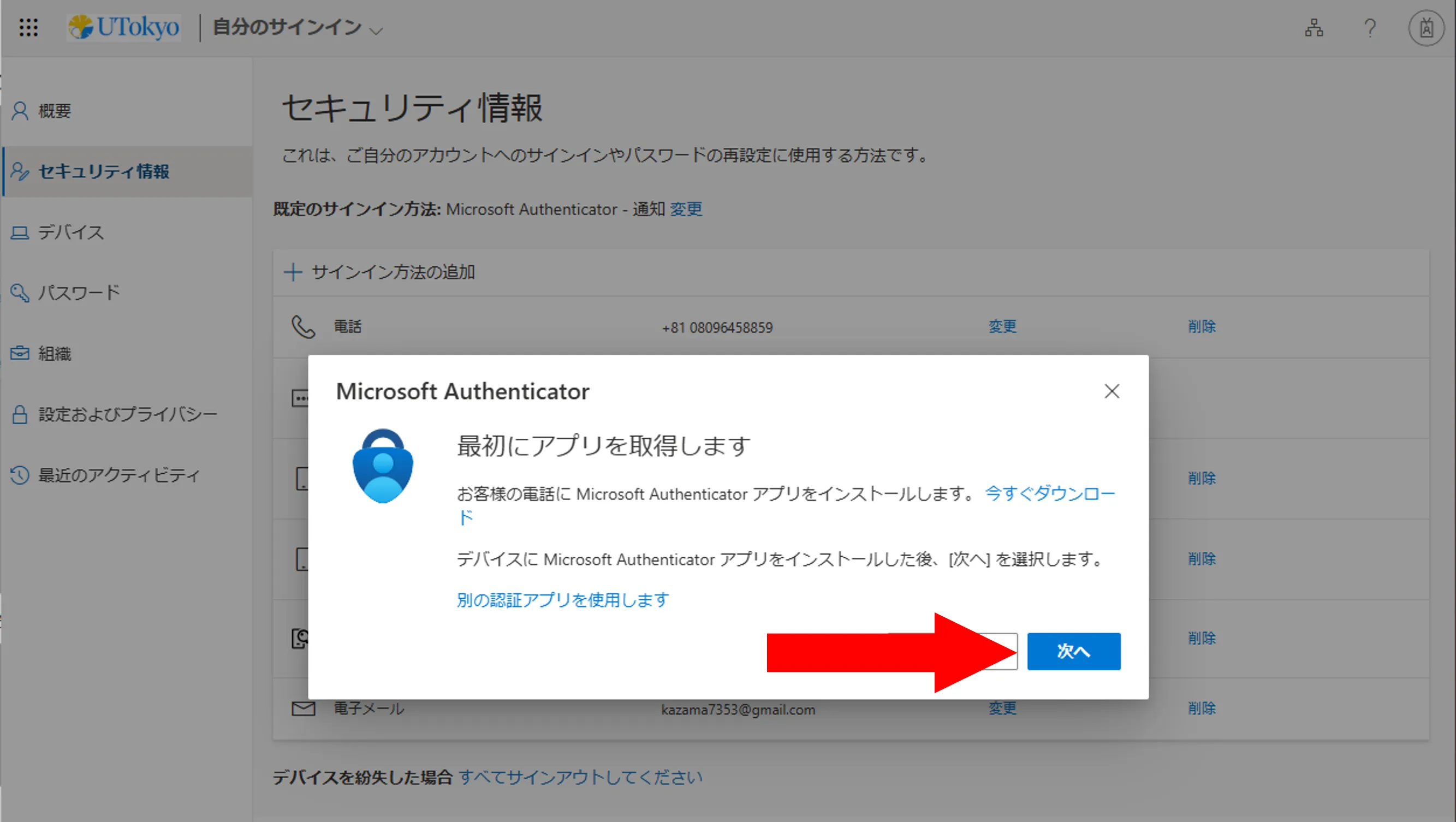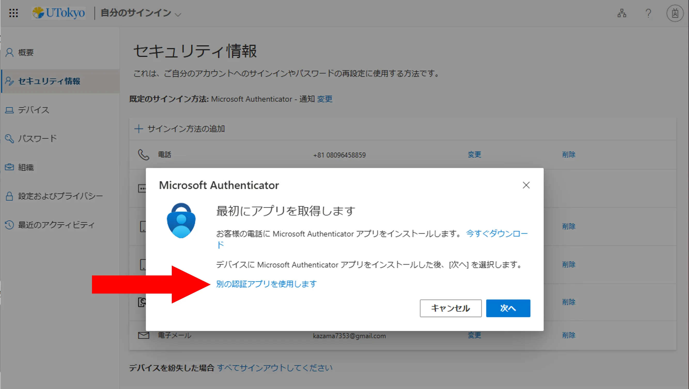 「Microsoft Authenticator」は,Microsoftが提供している多要素認証のための専用のアプリです.UTokyo Accountの多要素認証はMicrosoftのシステムを利用しているため,他の認証アプリよりスムーズに利用できます.2台以上のスマホを持っている場合は,2台目以降のスマホにインストールした「Microsoft Authenticator」を追加の本人確認方法として,手順2で登録することもできます.