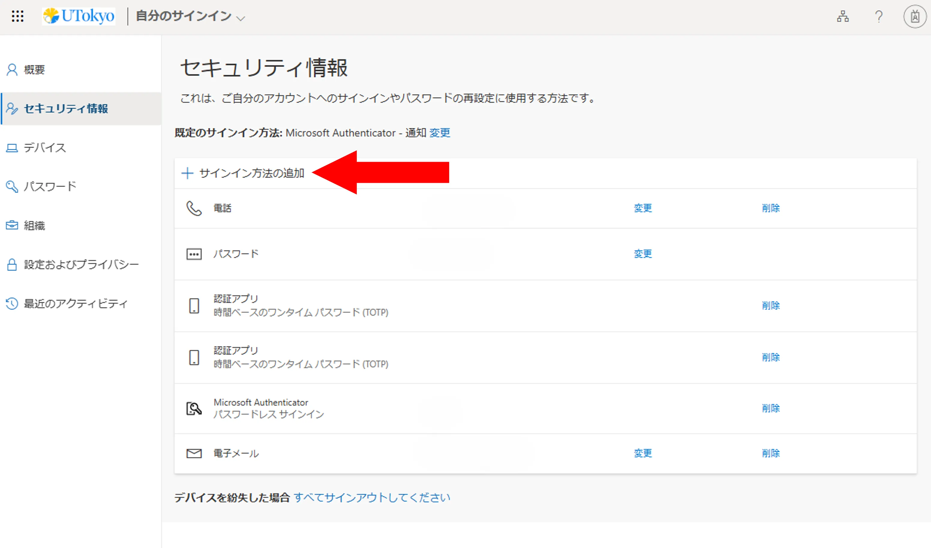 本人確認方法を1個しか登録していなくても多要素認証を利用することはできますが,故障や機種変更などで登録されている本人確認方法が使えなくなった場合,UTokyo Accountにサインインできなくなってしまいます.このような事態を防ぐため,必ず複数の本人確認方法を登録してください