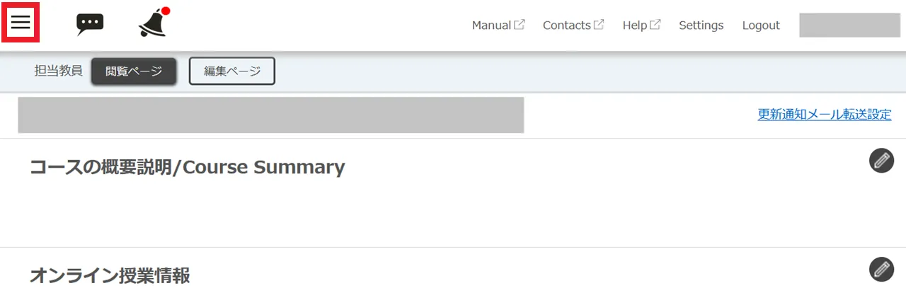 1. 対象のコースを開いた状態で左上の三本線のアイコンを押してください.