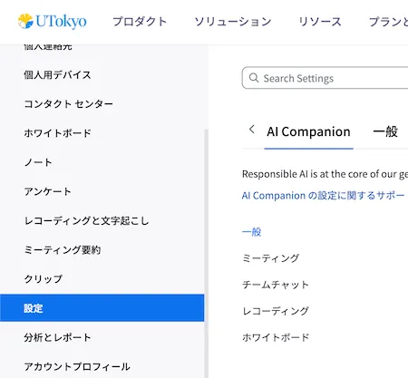 • 各機能の設定の詳細に関しては,「Settings and Configuration for Zoom AI Companion」に記載の各ページにある”User”に関する項目を参照してください.