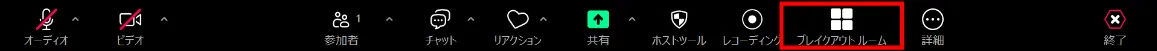 1. 画面下部の「ブレイクアウトルーム」(図中赤枠)を選択してください.