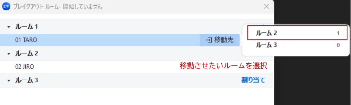 4. 割り当てたい参加者が全員ブレイクアウトルームに割り当てられていることを確認してください.